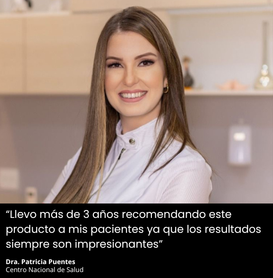 “Desde su lanzamiento, mis pacientes lo han usado con excelentes resultados; su efectividad ha alcanzado un 76%.” – Dra. Patricia Puentes.