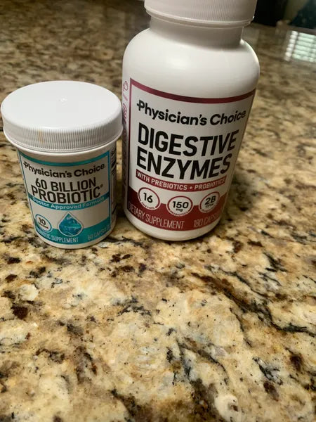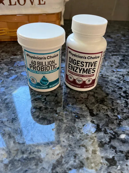 Toma una cápsula de probióticos en ayunas y una cápsula de enzimas digestivas con tu comida principal, acompañadas de agua.